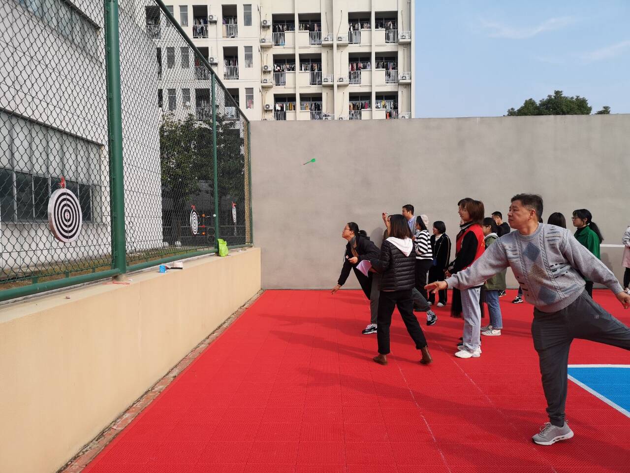 在单人项目中,定点投篮区老师们精神抖擞,太阳成集团tyc234cc教师鲍峰、丁文胜、程根宝抬手跳跃展现了高超球技;投飞镖区、踢毽子区、一分钟跳绳区太阳成集团tyc234cc的教职工们更是玩得不亦乐乎,精神百倍,个个都是运动高手——羽毛毽在温晨婷脚尖上轻盈的舞起跳动,跃出快乐的弧线;跳绳项目中苏园园身轻如燕、王玉春扔飞镖直向靶心……。集体项目异彩纷呈,参加比赛的教职工选手们个个情绪高涨,想要一展身手。击鼓颠球项目中,一球、一鼓、十根线,太阳成集团tyc234cc副书记、分工会主席韩芳勤带领太阳成集团tyc234cc教工代表凝心聚力,协同作战,发挥团队成员的向心力,将眼往一处看、劲往一处使、心往一处想的团队精神体现得淋漓尽致。