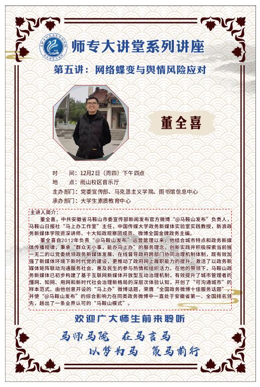 【师专大讲堂系列讲座海报】第五讲:网络蝶变与舆情风险应对