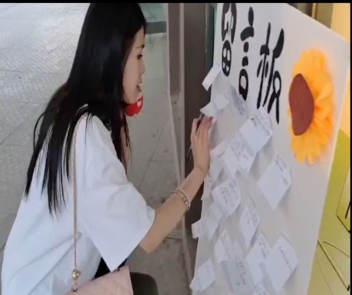 心灵互助社的成员们与老师在食堂门口举办525心理健康日活动。同学们撕下不被定义的标签,贴上自己对自己想说的话或者是画出自己最真实的一面,同时收到一朵美丽的红色玫瑰。