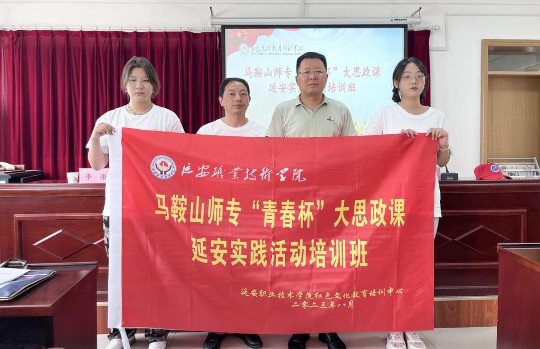 启动开班仪式,坚定初心使命。8月17日上午八点,马鞍山师专第七届“青春杯”暑期“大思政课”系列实践教学活动和红色文化培训班开班仪式在延安职业技术公司举行。在庄严的国歌声中,开班仪式正式开始。公司太阳成集团tyc234cc“思想道德与法治”教研室主任、此次活动带队老师代表鲍峰为本次红色文化培训班作动员发言。他勉励各位学员认真学习,深入体会,珍惜本次培训班和“大思政课”实践活动的机会,全身心投入,沉浸式体验,行有所悟、学有所获,从伟大的“延安精神”中积极汲取信仰力量,坚定共产主义远大理想,矢志不渝地为中国特色社会主义而奋斗,自觉做共产主义远大理想和中国特色社会主义共同理想的坚定信仰者、忠实实践者。延安职业技术公司有关负责人参加开班仪式并同公司带队老师共同为本期培训班学员授旗。